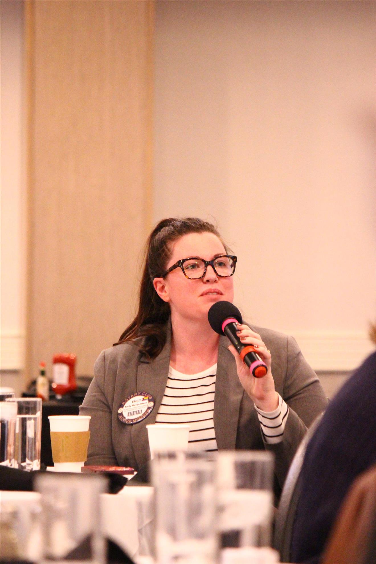 Kendrah Robinson introduces the students and staff of Muskegon Careerline Tech.